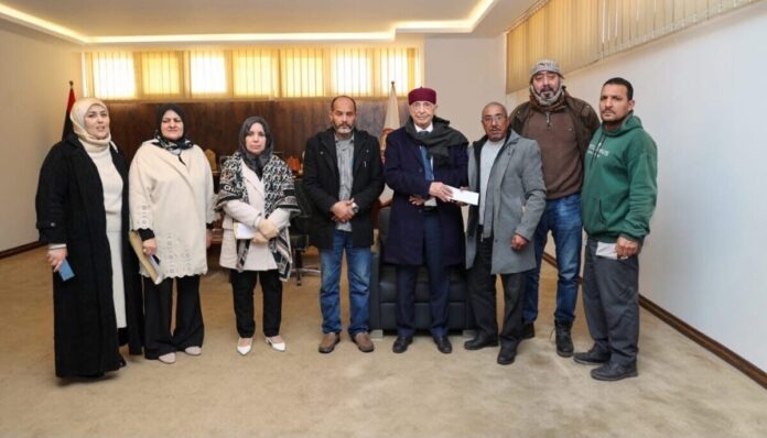 التقى رئيس مجلس النواب عقيلة صالح، اليوم الاثنين، وبحضور عضوات مجلس النواب عائشة الطبلقي وعائشة شلابي وانتصار شنيب، ممثلي عددٍ من الشركات المتعثرة والمنسحبة، وذلك لمناقشة الصعوبات والعراقيل التي تواجه العاملين بهذه الشركات.