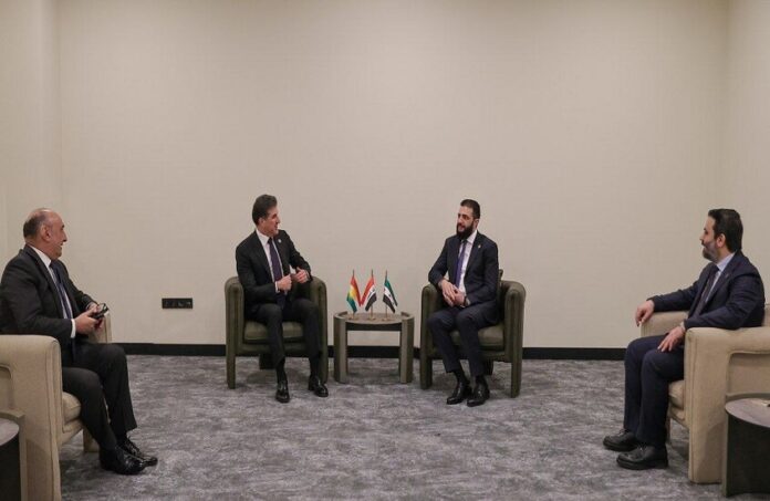 ونشر بارزاني عبر حسابه على منصة “إكس” تفاصيل لقائه مع الشرع، الذي جرى على هامش “منتدى أنطاليا الدبلوماسي” يوم أمس الجمعة، قائلا: “ناقشنا الأوضاع في سوريا، كما استمعت إلى رؤيته لمستقبل البلاد الذي يضمن حقوق جميع السوريين”.