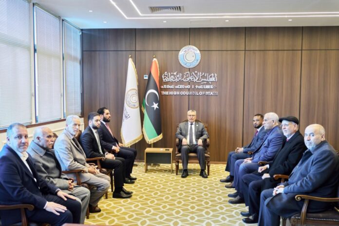 التقى رئيس هيئة الرقابة الإدارية، عبد الله قادربوه، برئيس المجلس الأعلى للدولة، الدكتور محمد تكالة، في اجتماع عقد بديوان المجلس الأعلى للدولة، لمناقشة التقرير السنوي الرقابي (54-55) للعامين 2024-2025، والبيانات والملاحظات الواردة فيه، وتقييم الوضع الاقتصادي والإداري للدولة، واستعراض سبل تعزيز استدامة المشروعات التنموية في مختلف القطاعات.