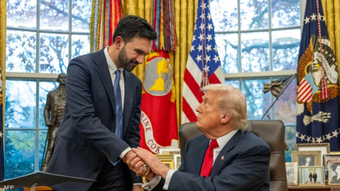 استقبل الرئيس الأمريكي دونالد ترامب، الجمعة، رئيس بلدية نيويورك المنتخب زهران ممداني في المكتب البيضاوي بالبيت الأبيض، في لقاء جمع بين رسائل تهدئة وخلافات سياسية مستمرة.