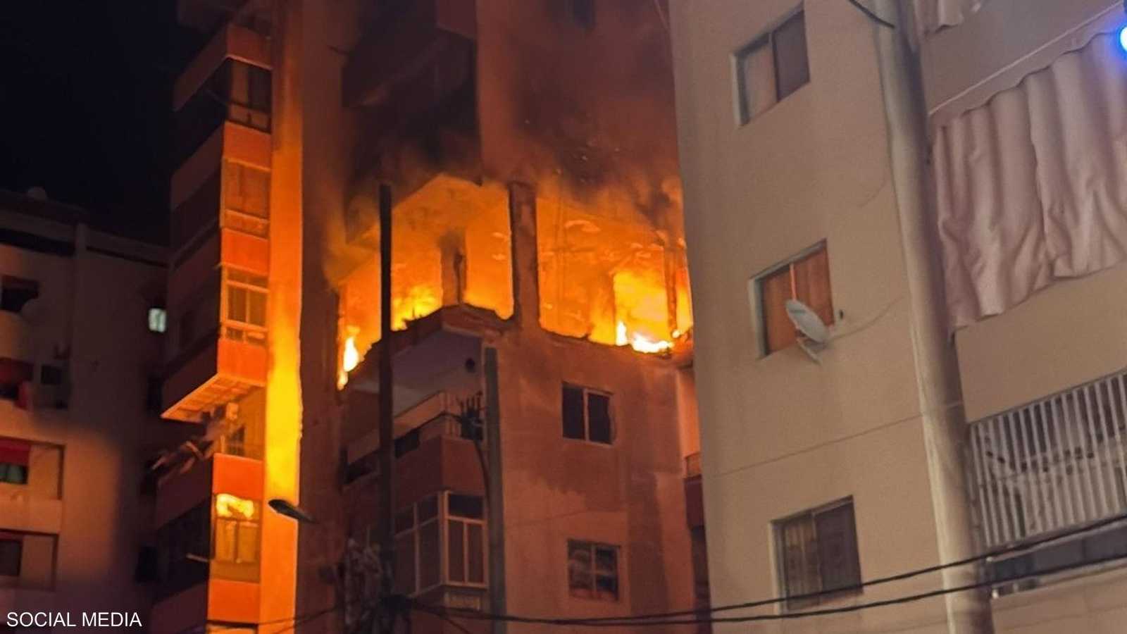 وانتشرت مقاطع فيديو، “تظهر الشقة المستهدفة والنيرات مشتعلة فيها من جراء الغارة الإسرائيلية”.