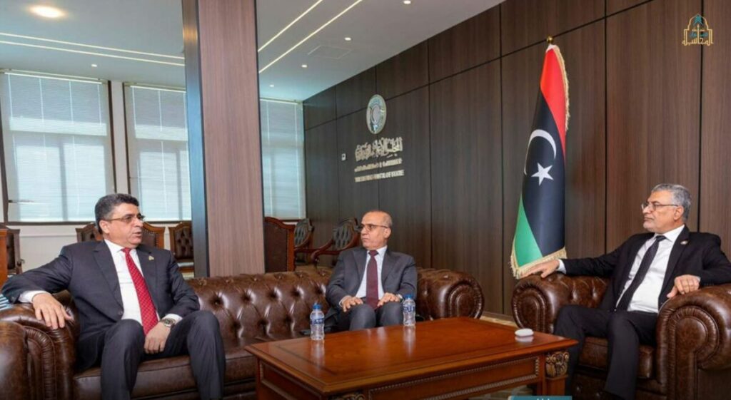 وتناول الاجتماع تطورات المشهد السياسي والاقتصادي في ليبيا، مع التركيز على تعزيز التنسيق بين المؤسسات السيادية والرقابية. ويأتي هذا اللقاء ضمن الجهود الرامية لترسيخ الاستقرار المؤسسي، ودعم العمل الرقابي، والارتقاء بكفاءة إدارة الموارد المالية لمواجهة التحديات الاقتصادية الراهنة.