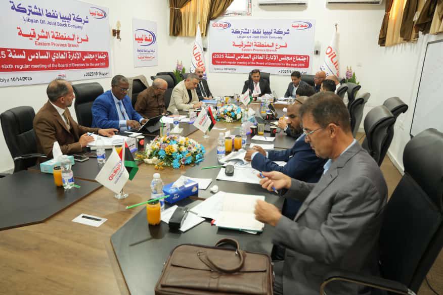 عقد مجلس إدارة شركة “ليبيا نفط”، المملوكة لمحفظة ليبيا أفريقيا للاستثمار، اجتماعه العادي السادس، يوم الاثنين 14 أكتوبر 2025، بفرع الشركة في مدينة إجدابيا بالمنطقة الشرقية، بحضور رئيس مجلس الإدارة، وكامل أعضاء المجلس، إلى جانب المدير العام، وهيئة المراقبة، ونائب المدير العام للمنطقة الشرقية، ومدير مكتب المراجعة الداخلية، وعدد من مديري الإدارات والمكاتب بالشركة.