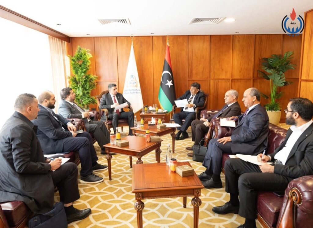 وشهد الاجتماع، الذي انعقد في مقر ديوان المحاسبة في طرابلس، مناقشة عدد من الملفات المرتبطة بالقطاع، من بينها ميزانية قطاع النفط، والإيرادات، وآليات سداد قيمة المحروقات، إضافة إلى متابعة العطاء العام للاستكشاف الذي أطلقته المؤسسة مطلع العام الحالي أمام الشركات العالمية العاملة في مجال الطاقة.