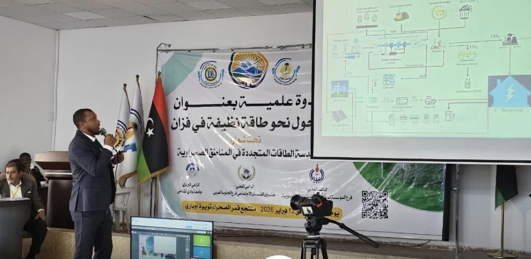 أعلنت المؤسسة الوطنية للنفط أن فعاليات الندوة العلمية بعنوان “التحول نحو طاقة نظيفة في فزان” انطلقت يوم الخميس 12 فبراير 2026 في منتجع “قمر الصحراء” بمنطقة “تويوه” ببلدية أوباري، بتنظيم وإشراف جامعة فزان وبدعم مباشر من المؤسسة.