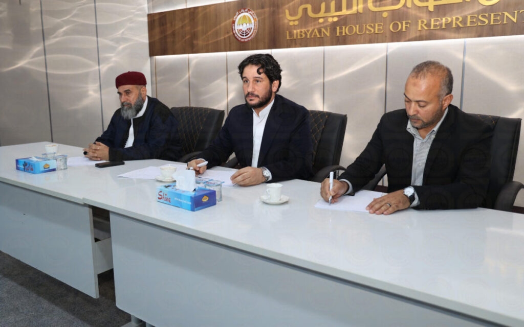 عقدت اللجنة المُكلفة بموجب قرار مجلس النواب رقم 3 لسنة 2024م لدراسة مدى تأثير فرض رسم على سعر صرف النقد الأجنبي بنسبة 27 % على دخل المواطن اجتماعاً بحضور رئيس اللجنة النائب الثاني لرئيس مجلس النواب مصباح دومة، وعضو اللجنة رئيس لجنة الاقتصاد والتجارة والاستثمار بالمجلس بدر النحيب، وعضو اللجنة رئيس لجنة متابعة الأجهزة الرقابية بالمجلس زايد هدية.