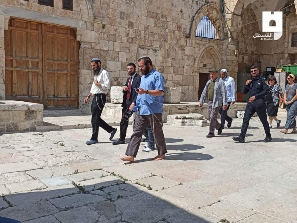 ويُنفذ المستوطنون اقتحامات شبه يومية للمسجد الأقصى المبارك، وينفذون جولات استفزازية داخل باحته، ويرافقهم أحيانا المتطرف يهودا غليك، وعضو الكنيست المتطرف إيتمار بن جفير.