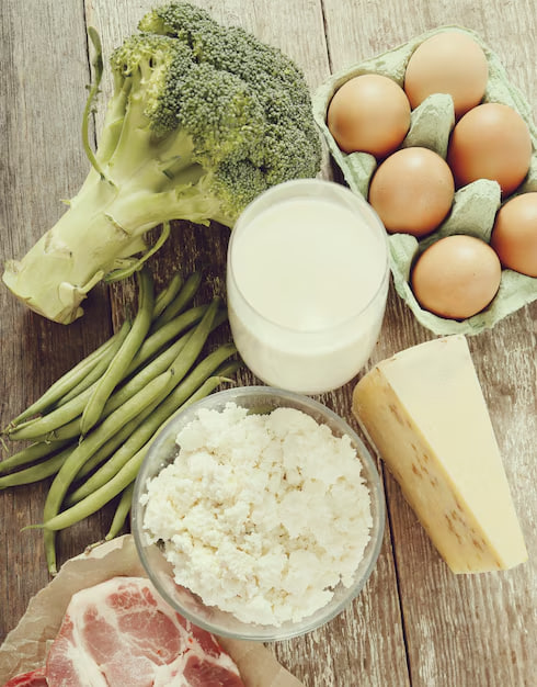 الأطعمة الغنية بالبروتين” التوفو المُعدّ بكبريتات الكالسيوم- السردين المعلب- الفاصوليا السوداء المعلبة- السلمون المعلب- المكسرات والبذور”.