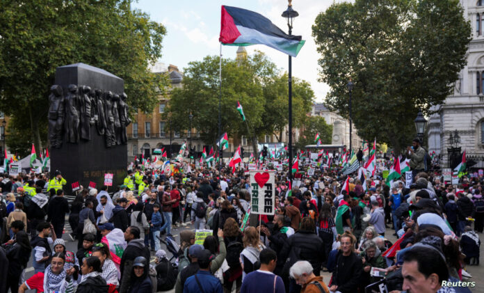 كم شهدت لندن مسيرة دعما للفلسطينيين، وخرج حوالي 40 ألف متظاهر شاركوا فيها فيما شهدت عواصم عالمية أخرى مسيرات تجمع فيها الآلاف في باريس وروما ومانيلا وكيب تاون ومدينة نيويورك وغيرها.