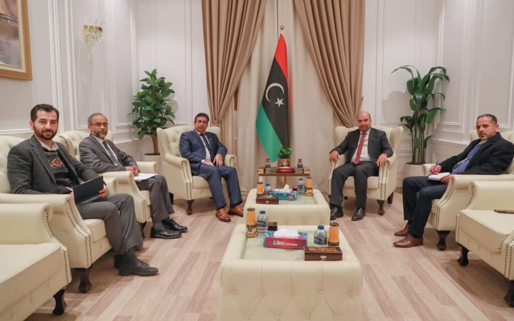 وتناول الاجتماع “سبل تعزيز العلاقات الثنائية بين البلدين، والترتيبات اللازمة لاستئناف عمل السفارة بكامل طاقمها في طرابلس، وسُبل تحديث الاتفاقيات الموقعة بين البلدين، كما تم التأكيد على أهمية عودة الشركات والعمالة الهندية للمساهمة في عمليات جهود إعادة الإعمار في البلاد، كذلك تنسيق التعاون المشترك في القضايا الإقليمية والدولية ذات الاهتمام المشترك”.