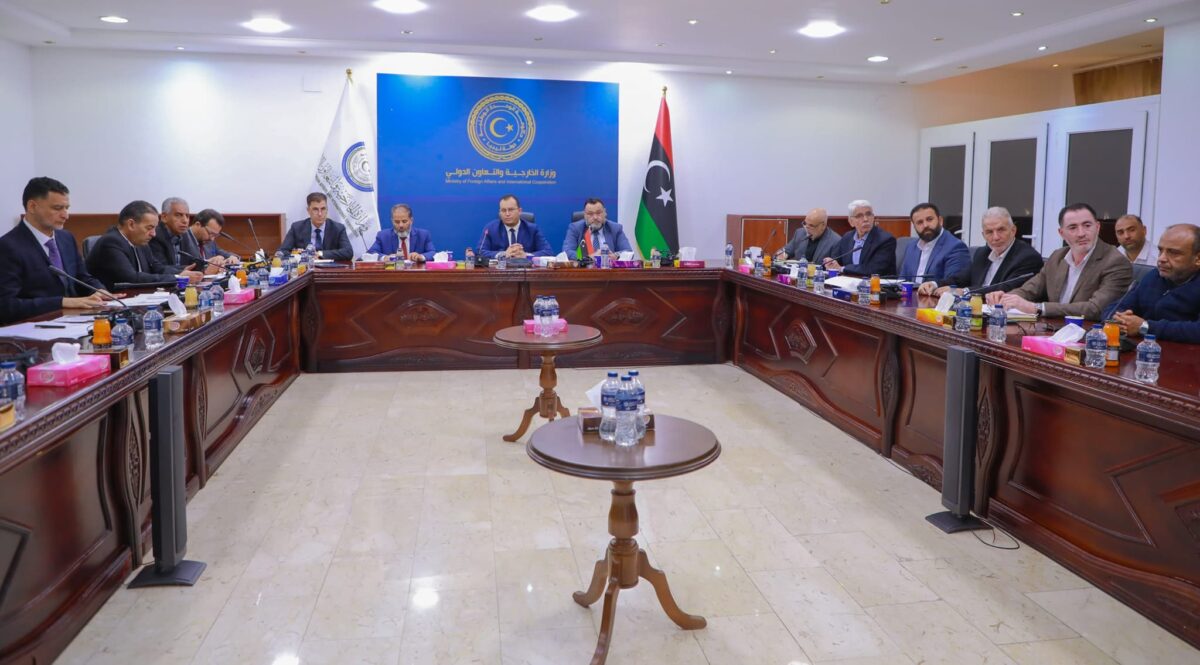 في إطار الجهود المبدولة من قبل وزارة الخارجية والتعاون الدولي بحكومة الوحدة الوطنية، لمتابعة سير علاقات التعاون الثنائى مع المملكة العربية السعودية، وبالتنسيق مع السفارة والقنصلية الليبية في المملكة، عُقد اجتماعا مشتركا، بديوان الوزارة برئاسة أشرف محمد التائب، مدير إدارة التعاون الدولي، وبحضور كل من مدير الادارة الإسلامية، والقائم بالأعمال  والقنصل العام الليبي في المملكة العربية السعودية، وعدد من المسؤولين من وزارة الداخلية، والتعليم العالي والبحث العلمي، والسياحة، وهيئة الحج والعمرة، ومصلحة الطيران المدني، وعدد من ممثلي شركات الطيران، وغرفة السياحة الليبية.