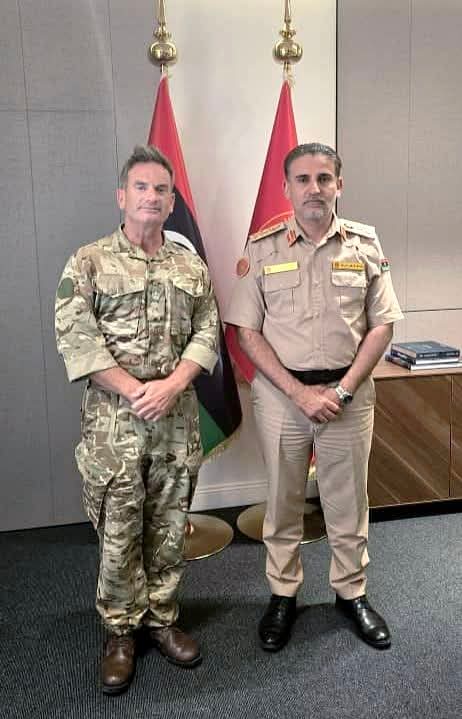 وتناول اللقاء سبل تعزيز التعاون الثنائي بين ليبيا والمملكة المتحدة في مجالات التدريب والتأهيل العسكري، بما يواكب متطلبات بناء مؤسسة عسكرية ليبية حديثة ومحترفة.