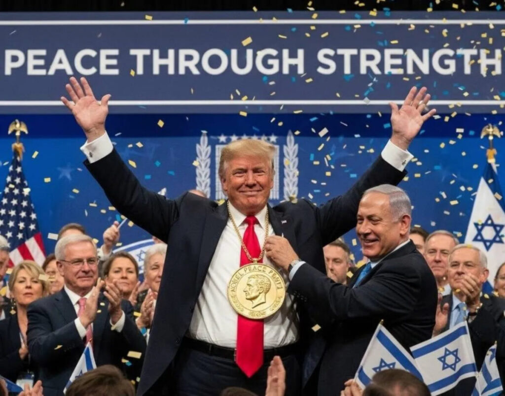 نشر رئيس الوزراء الإسرائيلي بنيامين نتنياهو، الخميس، صورة مُولّدة بالذكاء الاصطناعي للرئيس الأميركي دونالد ترامب وهو يرتدي ميدالية جائزة نوبل للسلام حول عنقه، مؤكداً في منشور على حسابه الرسمي في منصة «إكس»: «امنحوا دونالد ترامب جائزة نوبل للسلام — إنه يستحقها!».