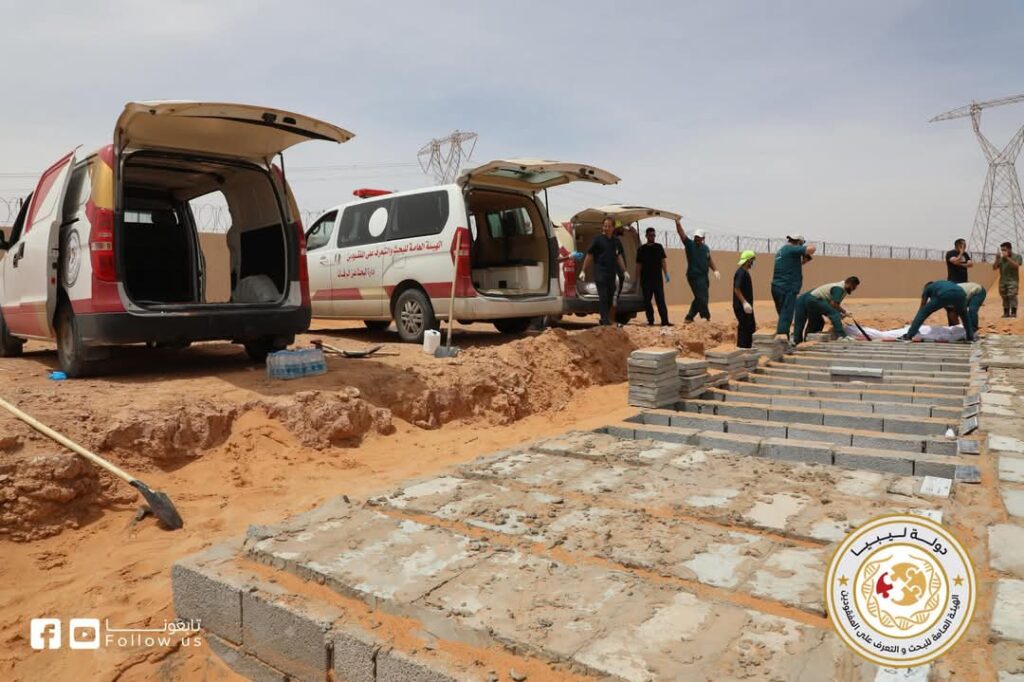 وتم دفن 17 جثمانًا في مقبرة أبوقرين بمدينة مصراتة، فيما يجري استكمال الإجراءات القانونية للجثامين المتبقية، وسيتم إحالة تقرير المطابقة النهائية إلى مكتب النائب العام.