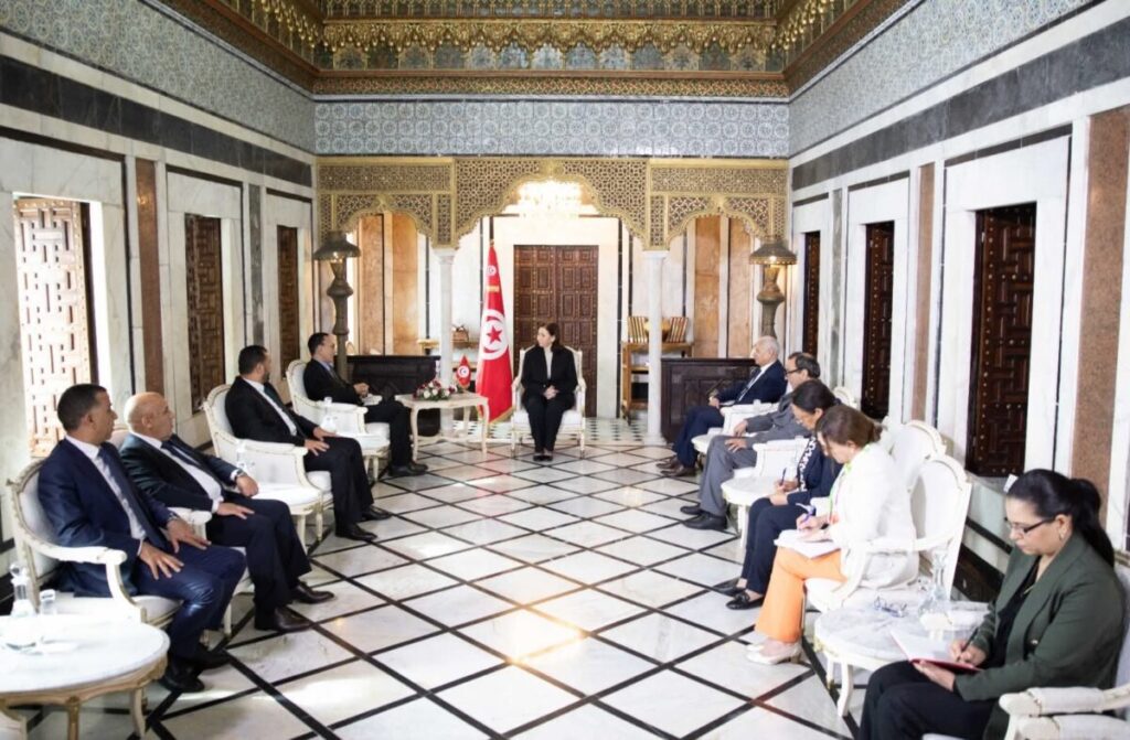 استقبلت رئيسة الحكومة التونسية، سارة الزعفراني الزنزري، وزير الاقتصاد والتجارة بحكومة الوحدة الوطنية محمد الحويج، والوفد المرافق له، وذلك في إطار زيارة عمل تهدف إلى متابعة تنفيذ توصيات اللجنة التجارية المشتركة التونسية-الليبية التي تمّ عقدها في طرابلس في ديسمبر 2024.