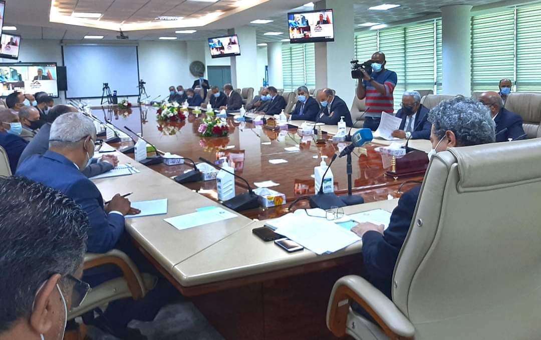 أجتمع وزير النفط والغاز بحكومة الوحدة الوطنية محمد عون، رفقة مستشاري الوزارة، برئيس وأعضاء مجلس إدارة المؤسسة الوطنية للنفط، ومدراء الشركات والمعاهد النفطية التابعة لها ومعهد النفط الليبي.