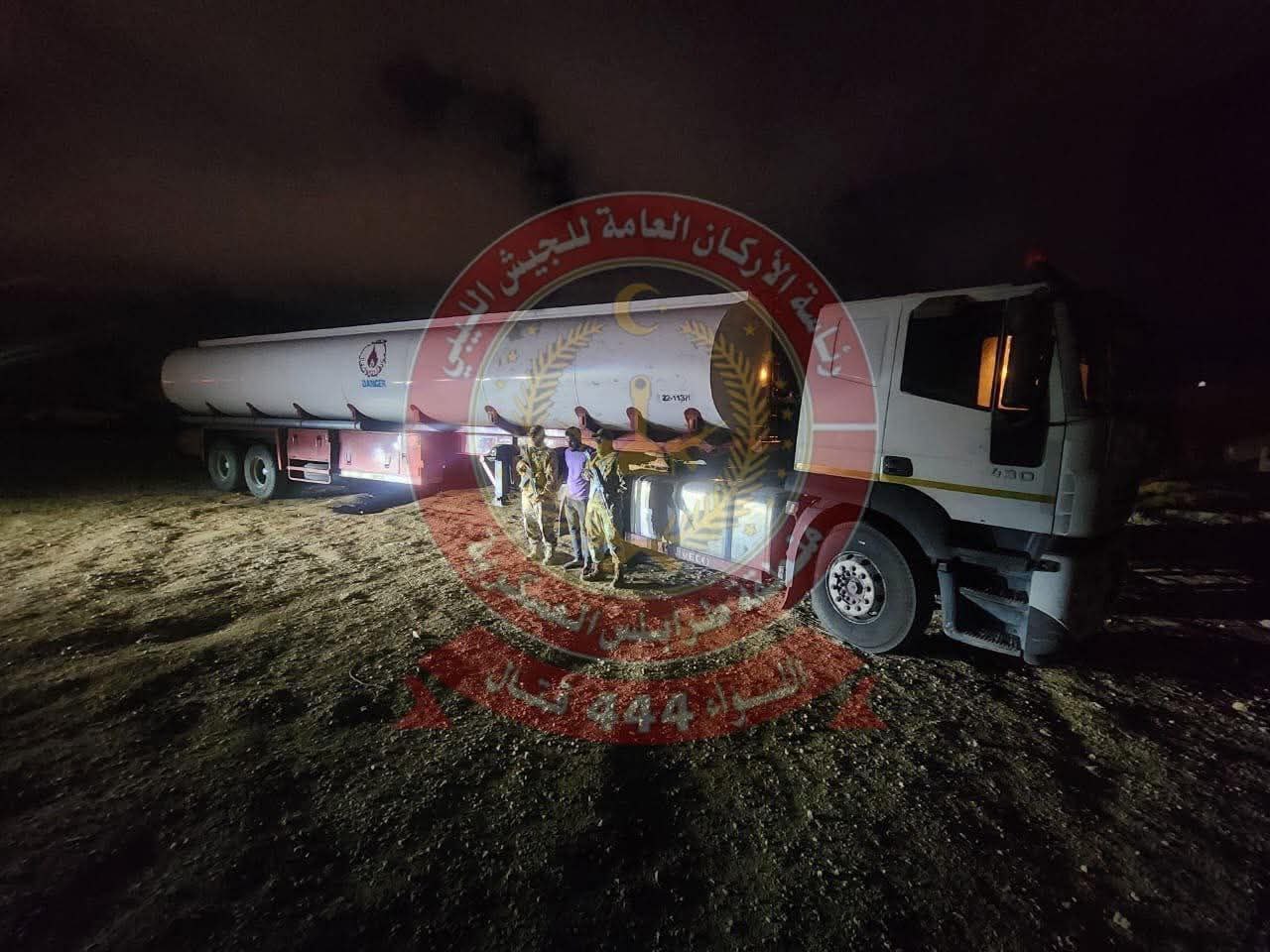 الجيش وقسم مكافحة التهريب يضبطان شحنة وقود معدة للتهريب في غريان