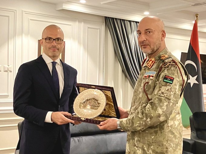 بحث رئيس اركان الجيش الليبي الفريق أول ركن “محمد الحداد”، مع سفير بعثة الاتحاد الأوروبي لدى ليبيا ” نيكولا أورلاندو”، التطورات الإقليمية والمساعدة المستمرة من الاتحاد الأوروبي لليبيا.