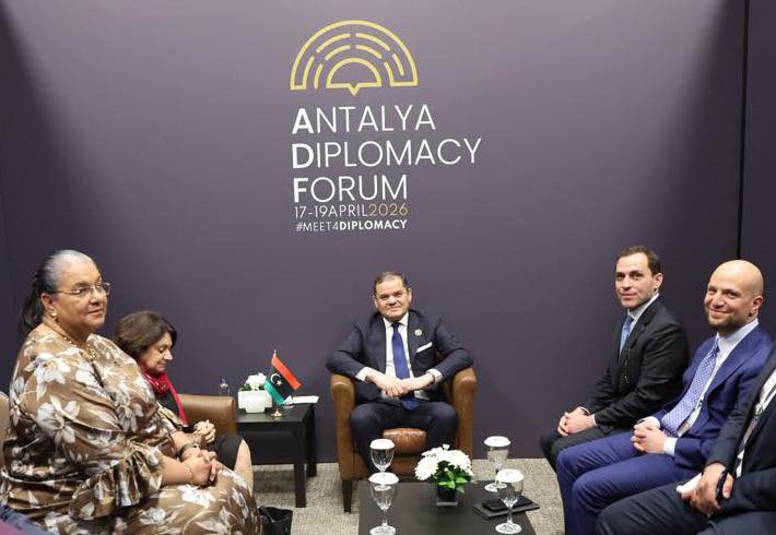 عقد رئيس حكومة الوحدة الوطنية عبد الحميد الدبيبة عقد اجتماعًا مع وكيلة الأمين العام للأمم المتحدة للشؤون السياسية وبناء السلام روزماري ديكارلو، على هامش مشاركته في منتدى أنطاليا الدبلوماسي، وذلك بحضور الممثلة الخاصة للأمين العام للأمم المتحدة ورئيسة بعثة الأمم المتحدة للدعم في ليبيا هانا تيتيه.