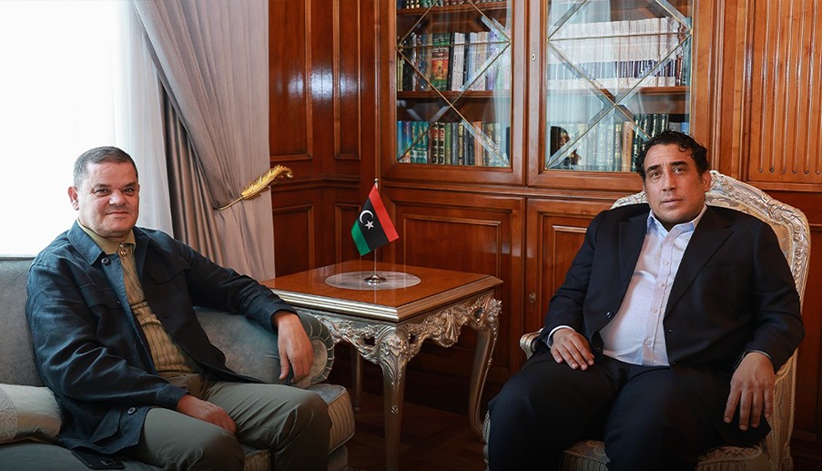 استقبل رئيس حكومة الوحدة الوطنية عبد الحميد الدبيبة، رئيس المجلس الرئاسي محمد المنفي، في لقاء تناول مستجدات الأوضاع السياسية والاقتصادية في البلاد.