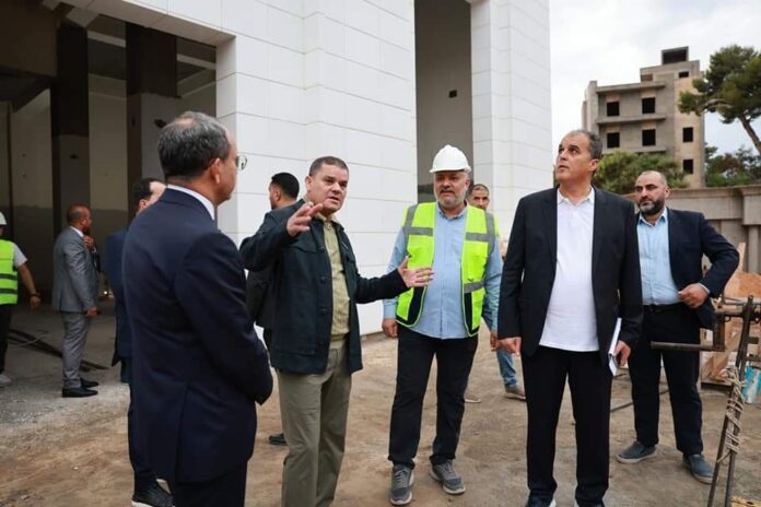 وخلال الزيارة، استمع الدبيبة، “إلى الشروح الفنية حول الأعمال المنجزة والجارية، واستعراض الجدول الزمني للتنفيذ”.
