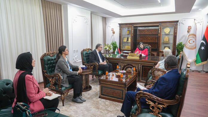 استقبلت وزيرة الشؤون الاجتماعية في حكومة الوحدة الوطنية وفاء أبو بكر الكيلاني، مدير منظمة اليونيسف في ليبيا، بحضور عضو مجلس النواب عائشة شلابي، لمناقشة تعزيز التعاون المشترك لدعم برامج الطفولة في ليبيا.