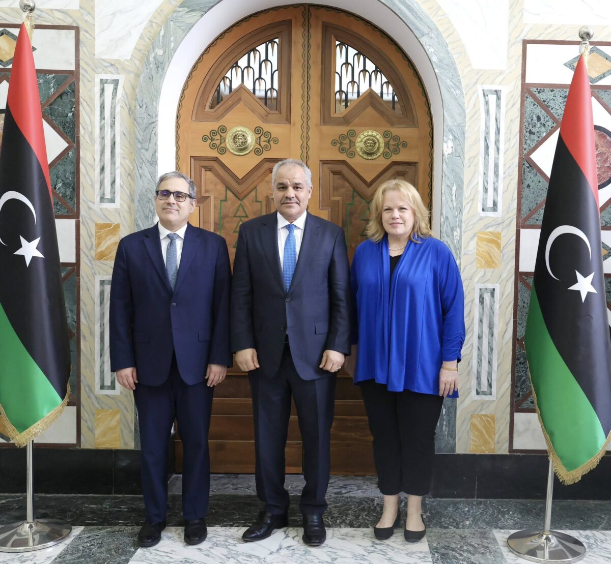 استقبل محافظ مصرف ليبيا المركزي ناجي عيسى، صباح الاثنين 27 أبريل 2026، في مكتبه بطرابلس، القائم بأعمال سفارة الولايات المتحدة لدى ليبيا جيرمي برنت، ونائبة رئيس البعثة الدبلوماسية بالسفارة إنغا هيمينكو.