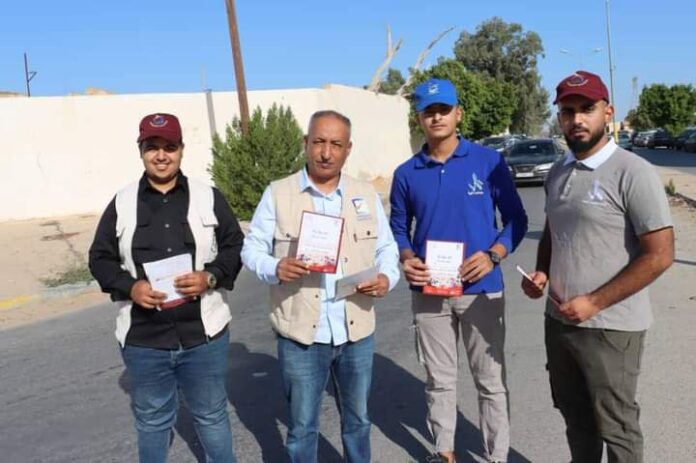 وقام منسقو التوعية والتواصل بالمكاتب بالتعاون مع الشركاء من منظمات المجتمع المدني وأفواج الكشافة والمرشدات واتحادات الطلبة والهلال الأحمر وحركة بيوت الشباب الليبية وسفيرات التوعية بالبدء في الحملة من خلال توزيع مطويات توعوية وتحفيزية على المواطنين داخل البلديات المستهدفة بالانتخاب في المجموعة الأولى من انتخاب المجالس البلدية 2024.