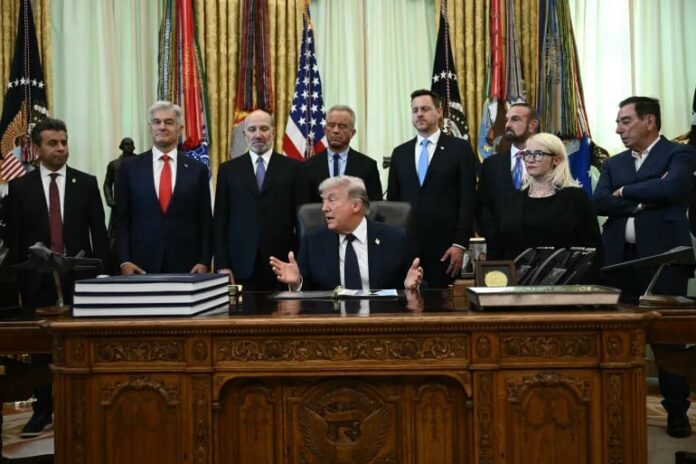 أثار مقطع فيديو متداول على منصات التواصل الاجتماعي موجة واسعة من الجدل في الولايات المتحدة وخارجها، بعد أن ظهر فيه الرئيس الأمريكي دونالد ترامب في وضعية توحي بأنه يضع رأسه على الطاولة خلال مؤتمر صحفي رسمي، وسط استمرار حديث الحضور خلفه.