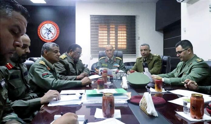 وتناول الاجتماع، “تفعيل التدريب المشترك لمنتسبي الجيش الليبي في ليبيا والجزائر، وذلك استكمالاً لما تم الاتفاق عليه بين البلدين”.