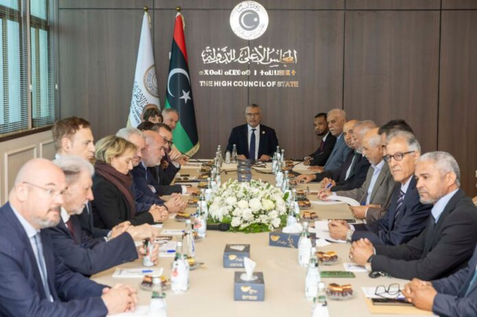 استقبل رئيس المجلس الأعلى للدولة الدكتور محمد تكالة، يوم الأربعاء 29 أبريل 2026، بمقر المجلس في العاصمة طرابلس، وفدًا برلمانيًا من إيطاليا برئاسة رئيس اللجنة البرلمانية لأمن الجمهورية الإيطالية لورينزو غيريني، بحضور النائب الأول المهندس حسن حبيب، والنائب الثاني موسى فرج، وعدد من رؤساء اللجان الدائمة بالمجلس، إلى جانب سفير إيطاليا لدى ليبيا جيانلوكا ألبيريني والوفد المرافق.