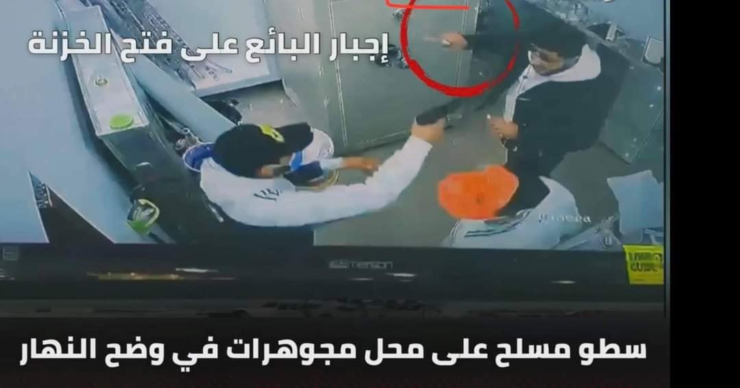 وتداولت منصات التواصل الاجتماعي مشهداََ لجريمة سطو مسلح بالعاصمة طرابلس في منطقة غوط الشعال، في وضح النهار لعصابة من عدة أفراد قاموا باقتحام محل مجوهرات والتعدي على مالكه واحتجاز أحد المواطنين الماريين عند انتباهه لما يدور داخل المحل.