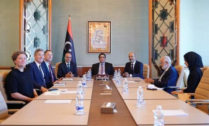 وبحث الجانبان، الأوضاع السياسية والاقتصادية والأمنية في ليبيا، ومشروع المصالحة الوطنية والخروج من الانسداد السياسي والوصول إلى الانتخابات في أقرب الآجال.