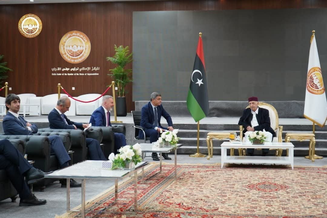 استقبل رئيس مجلس النواب المستشار عقيلة صالح بمكتبه في مدينة القبة وفداً برلمانياً إيطالياً رفيع المستوى برئاسة رئيس اللجنة البرلمانية لأمن الجمهورية الإيطالية لورينزو غيريني، بحضور السفير الإيطالي لدى ليبيا جيانلوكا ألبيريني.