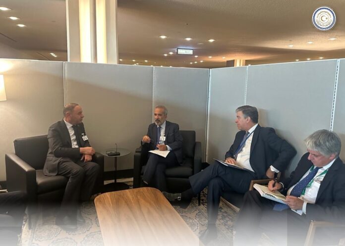 عقد وزير الخارجية بالإنابة في حكومة الوحدة الوطنية الطاهر الباعور، اليوم الخميس الموافق 25 سبتمبر 2025، لقاءً ثنائياً مع وزير الخارجية البرتغالي، باولو رانغيل، على هامش أعمال الدورة الثمانين للجمعية العامة للأمم المتحدة في نيويورك.