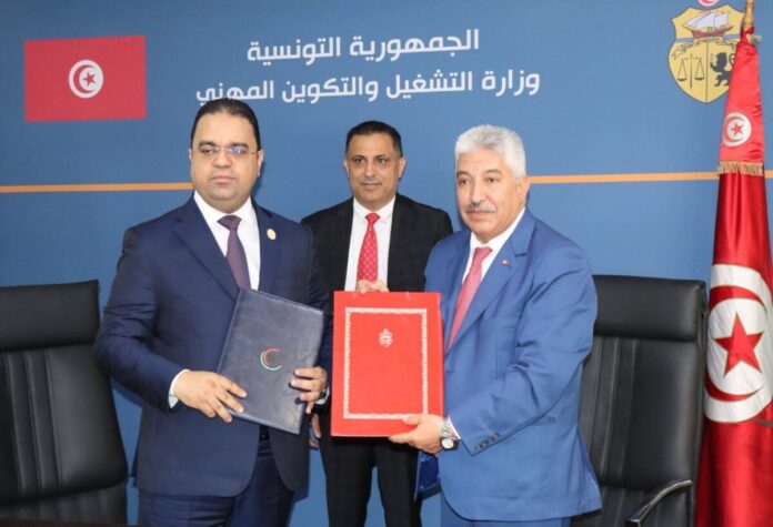 وقّع وزير العمل والتأهيل بحكومة الوحدة الوطنية المهندس علي العابد الرضا، مع وزير التشغيل والتكوين المهني التونسي رياض شوّد، مذكرة تفاهم تهدف إلى تعزيز التعاون الثنائي بين ليبيا وتونس في مجالات العمل والتكوين المهني.