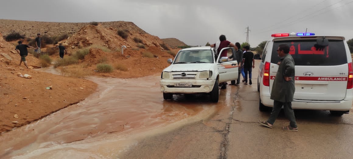 أعلن جهاز الإسعاف والطوارئ، “وفاة مواطن بمنطقة وشتاته في بني وليد، قائلا إنه يجري إخلاء عمارات 51 بالمدينة”، مشيرا إلى “ارتفاع سريع لمنسوب المياه من جهة وادي القرجومة- وادي النورة ببني وليد”، ومطالبا “المواطنين بعدم الاقتراب من تلك السيول”.